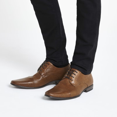 River island tan clearance shoes, Brown wide fit faux leather derby shoes River Island clearance