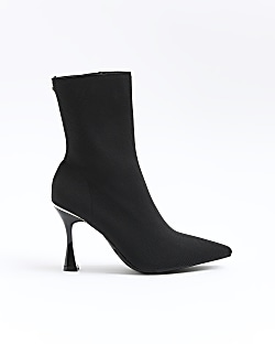 River island boots clearance balenciaga, Black wide fit knit heeled ankle boots River Island clearance