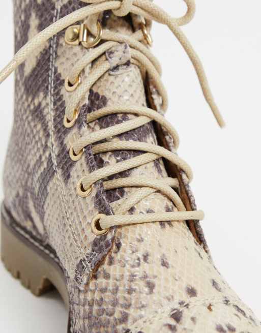 River Island snakeskin hiker boot in beige ASOS