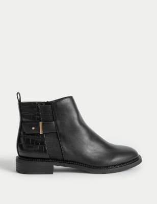 Croc clearance buckle boots, Stradivarius Str Moc Croc Heeled Buckle Boots in Black Lyst UK clearance