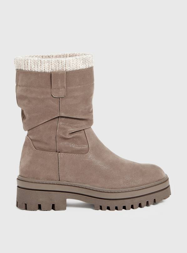 Buy Taupe Faux Leather Knit Cuff Boots 3 Boots Tu