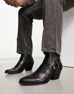 ASOS DESIGN cuban chelsea boot with buckle detail in black faux