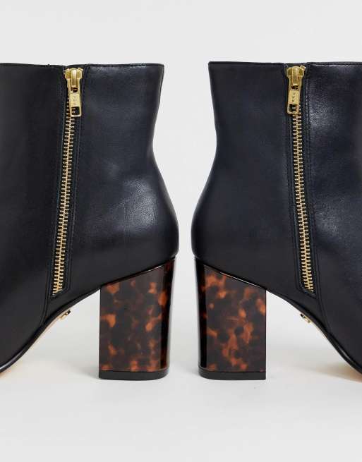 Tortoise clearance heel boots, New look Black leather style square toe ankle boots with tortoise shell heel clearance