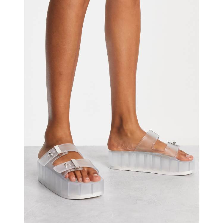ASOS DESIGN Finale buckle platform flat sandals in clear