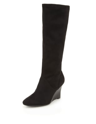 Almond Toe Wide Fit Stretch Wedge Boots with Insolia M S