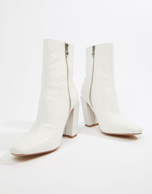 Missguided White Feature Heel Croc Ankle Boots Boots Heels