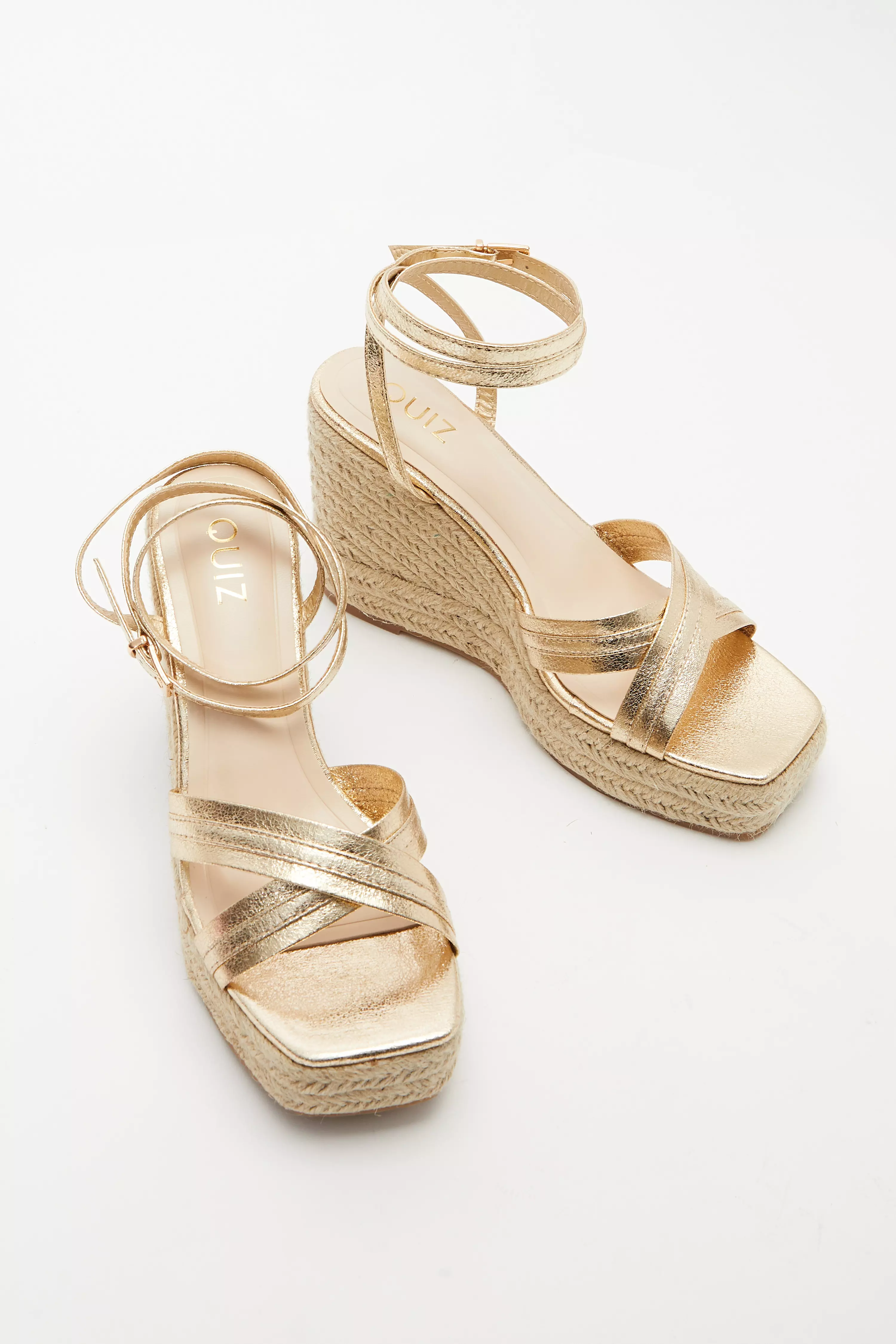 Quiz clearance gold wedges, QUIZ Silver Glitter Gem Strap Wedge Sandals clearance
