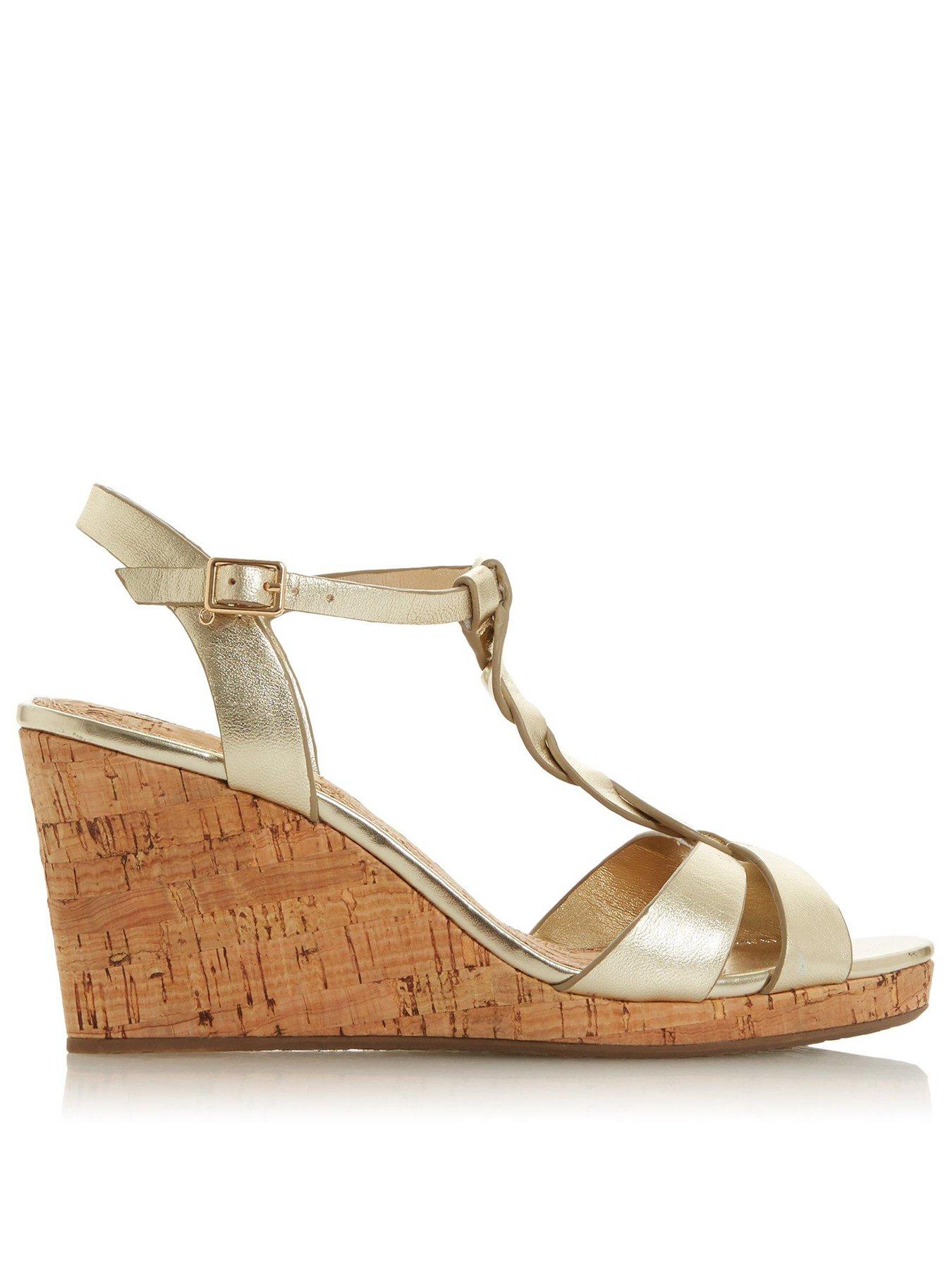 Dune clearance koala gold, Buy Dune London Blue Koala Wide Fit Plait T Bar Strap Cork Wedge clearance