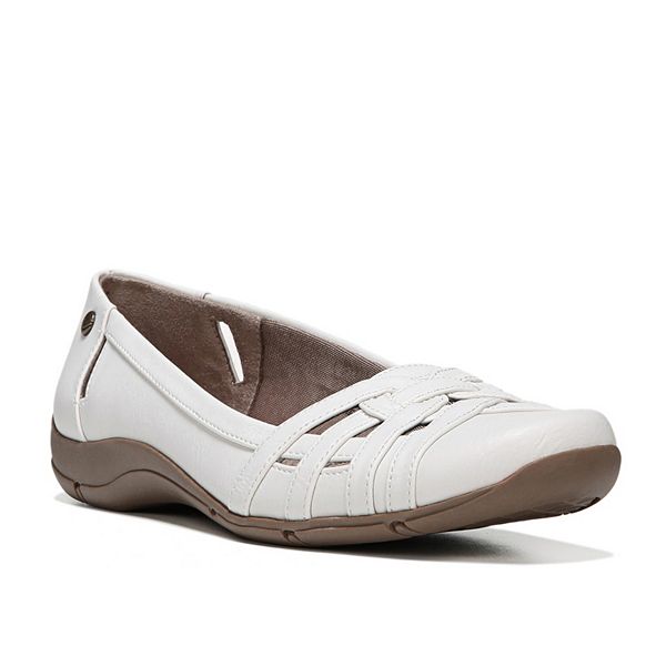LifeStride Diverse Womens White Sand Round Toe Slip On Ballet