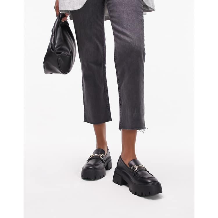 Topshop Lex chunky loafer with metal detail in black ASOS