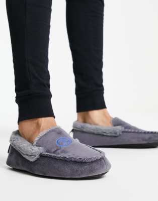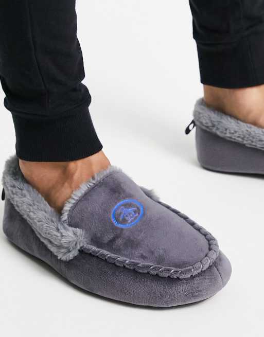 Original Penguin faux fur lined moccasin slippers in grey ASOS