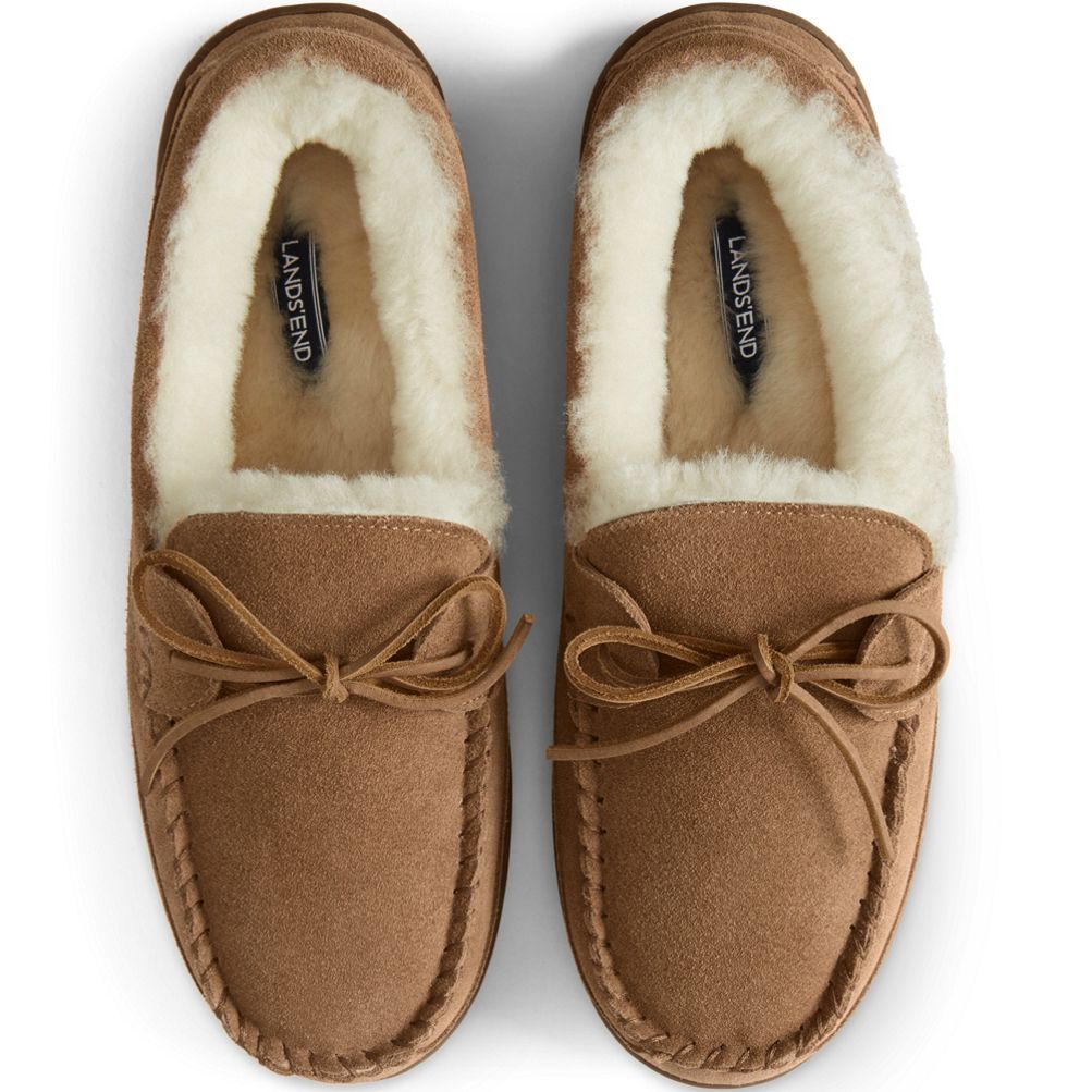 Men s Fuzzy Shearling Moccasin Slippers Lands End