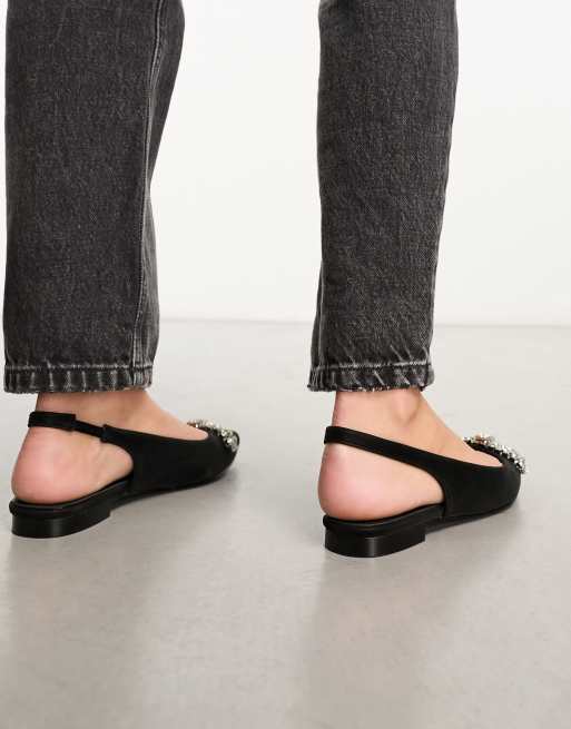 Glamorous Wide Fit slingback embellished bow pointed toe flats in