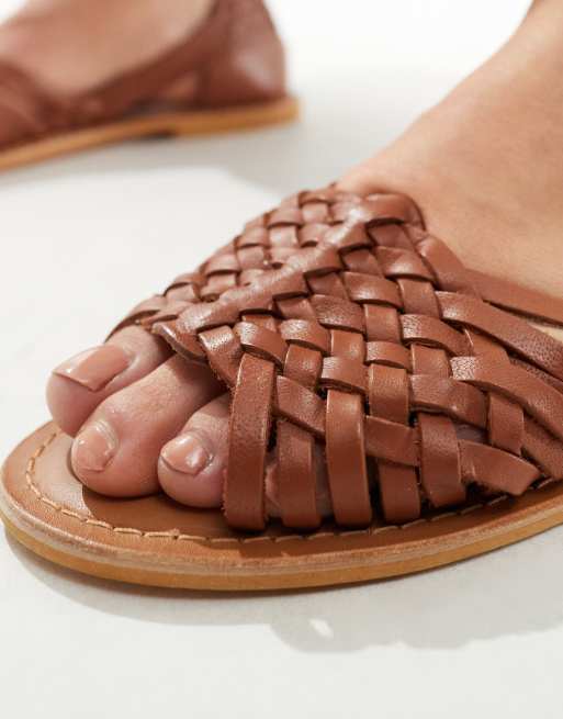 ASOS DESIGN Wide Fit Francis leather woven flat sandals in tan