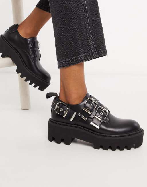 Lamoda chunky flat shoes with buckles in black ASOS