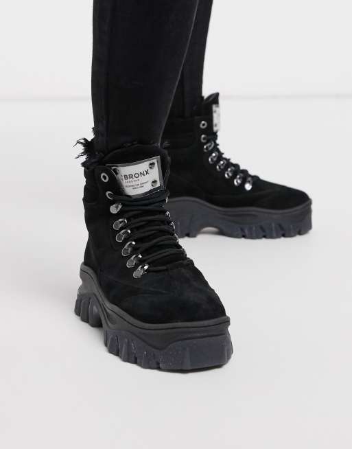 Bronx black leather chunky sole clearance hiker boots, Bronx Lace up boot Groovy Chunks Black 01 The Little Green Bag clearance