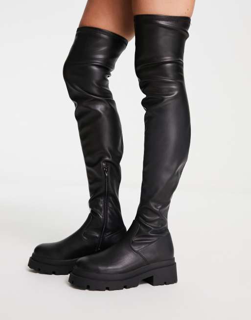 ASOS DESIGN Kieran chunky flat over the knee boots in black ASOS