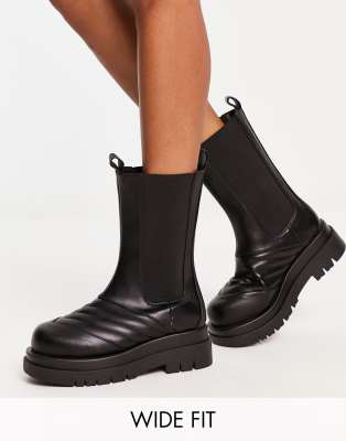 Raid Wide Fit Adalee Stitch Detail Calf Length Boots In Black