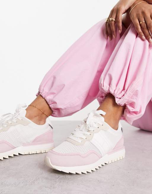 Womens pink and clearance white trainers