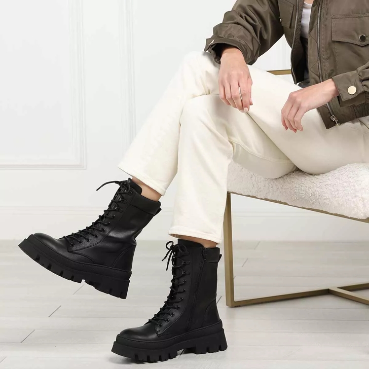 Steve Madden Forecast lace front chunky boots in black