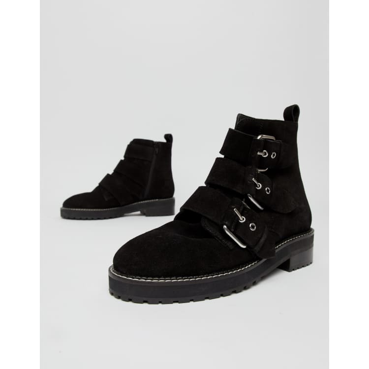 Office artillery chunky black clearance suede three buckle boots, Lemon Drop by Privileged Faux Suede Buckle Ankle Boots Fuchsia clearance