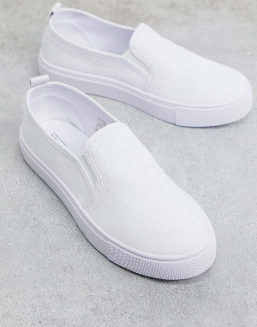 ASOS DESIGN Wide Fit Dotty slip on plimsolls in white ASOS