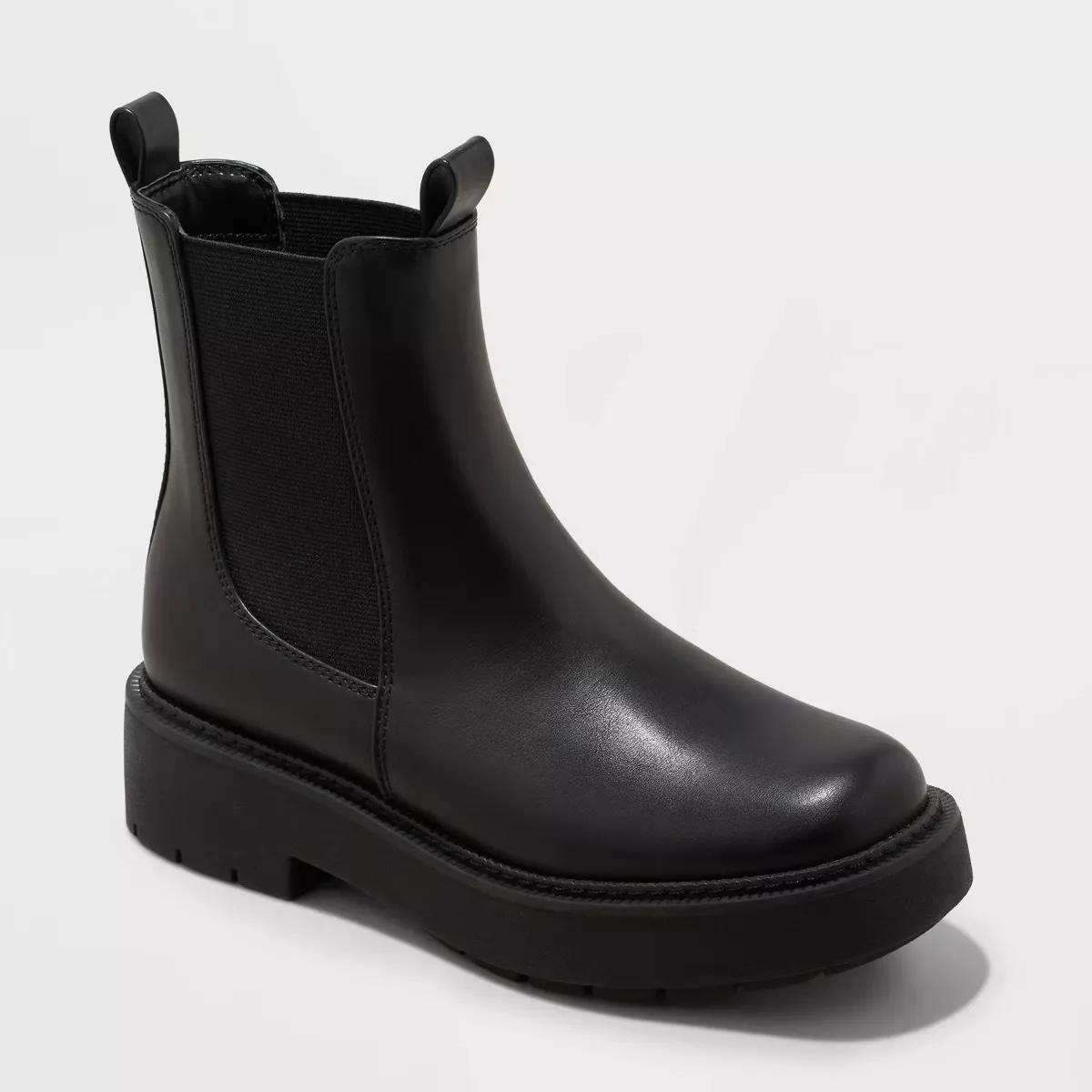 Wild Fable Women s Black Faux Leather Side Zipper Zea Combat Boots