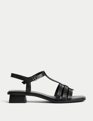 Wide Fit Leather T Bar Block Heel Sandals M S Collection M S