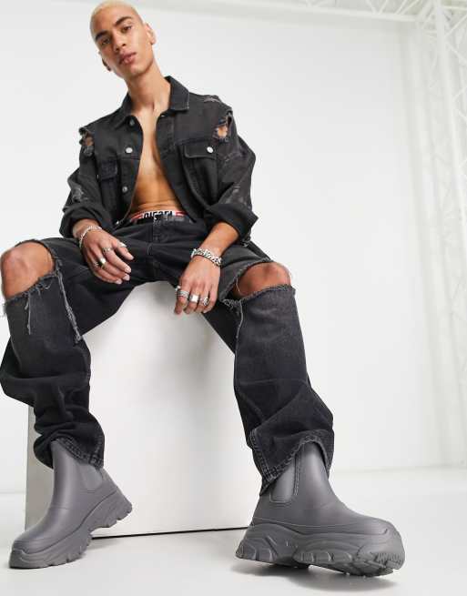 ASOS DESIGN chelsea wellington boots with chunky sole in charcoal gray