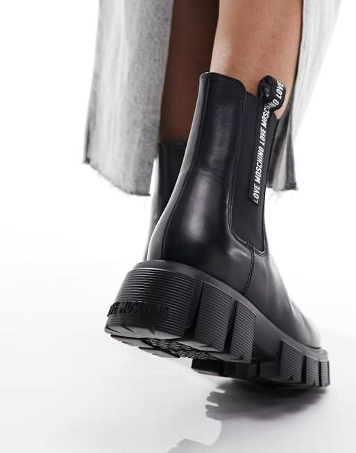 Moschino clearance logo boots, Logo Embroidery combat boots with glitter Moschino Official Store clearance