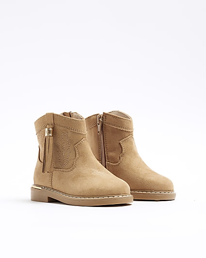 Girls Tan Plaited Trim Block Heel Ankle Boots New Look