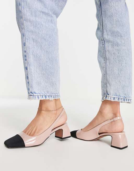 ASOS DESIGN Sally toe cap slingback block heeled shoes in beige