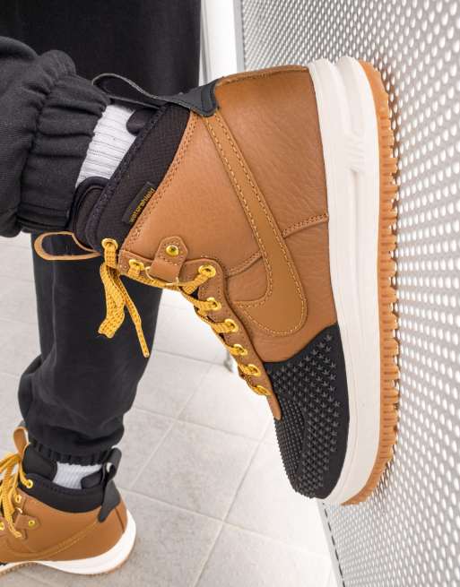 Nike Air Force 1 Lunar Force boots in brown and black with gum sole