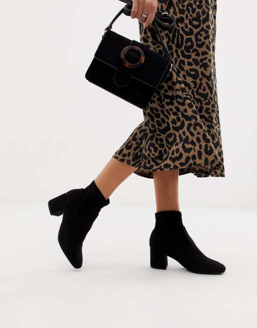 New look square toe clearance sock heeled boot in black, London Rebel Black Square Toe Block Heel Sock Boots New Look clearance
