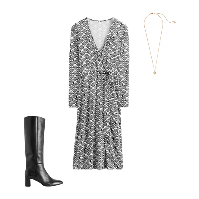 Nina Jersey Midi Dress Black Blossomy Boden UK