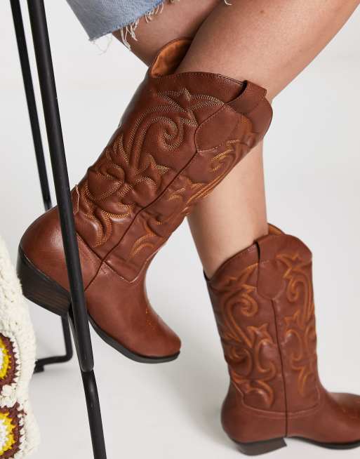 ASOS DESIGN Andi flat western boots in pink glitter ShopStyle