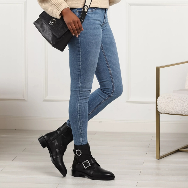 Stuart Weitzman Ryder Pearl Geo Buckle Bootie Black Ankle Boot