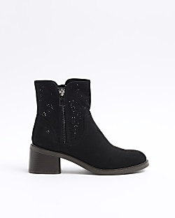 Black Pu Point Toe Cut Out Wedge Ankle Boots PrettyLittleThing
