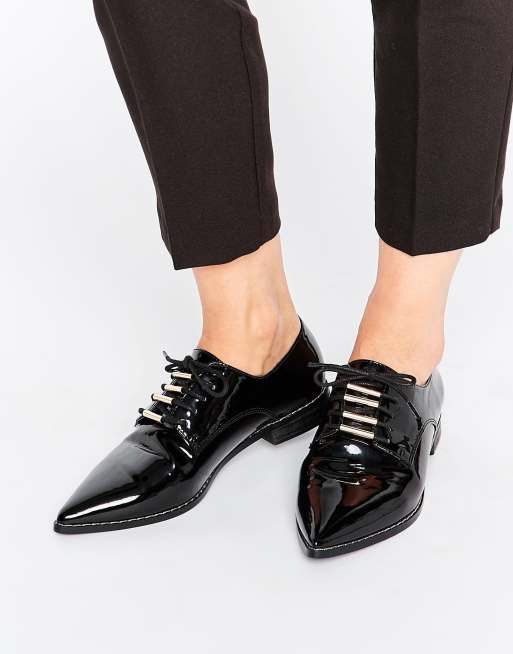 Pointed lace up clearance shoes, ASOS DESIGN Majesty leather pointed lace up flat shoes in black ASOS clearance