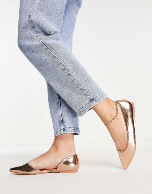 Metallic flats pointed clearance toe, ASOS DESIGN Wide Fit Virtue d orsay pointed ballet flats in gold metallic clearance