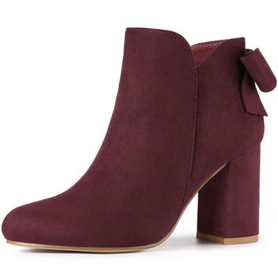 Allegra K Women s Round Toe Bow Decor Chunky Heel Ankle Boots