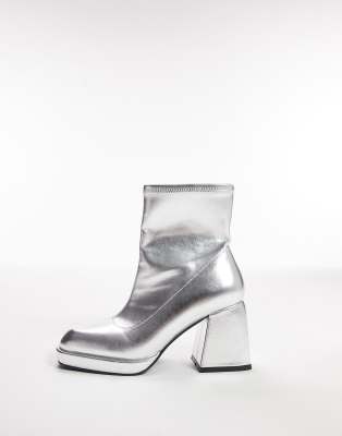 Topshop Wide Fit Tiff block heeled ankle boot in silver Compare