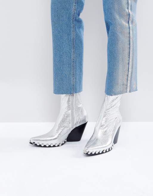 Jeffrey campbell silver clearance boots, Jeffrey Campbell Stratford glitter boots. NWOT. Size Depop clearance