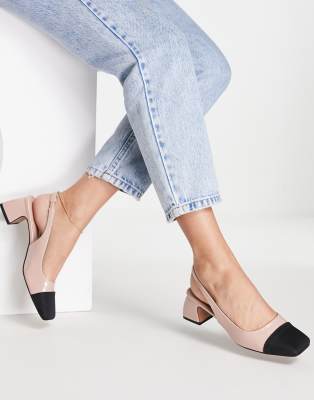 ASOS DESIGN Sally toe cap slingback block heeled shoes in beige