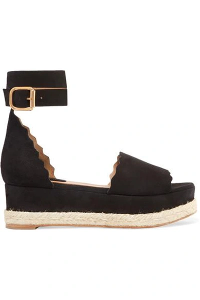 Chlo Lauren Scalloped Suede Espadrille Platform Sandals In Black