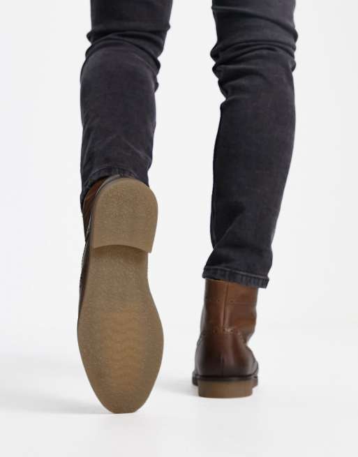 ASOS DESIGN brogue boots in tan leather with natural sole