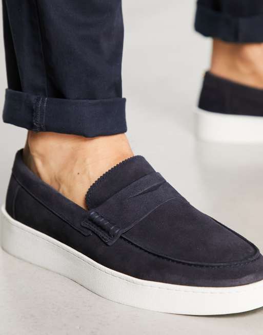 Noak made in Portugal casual loafers in navy suede with contrast white sole