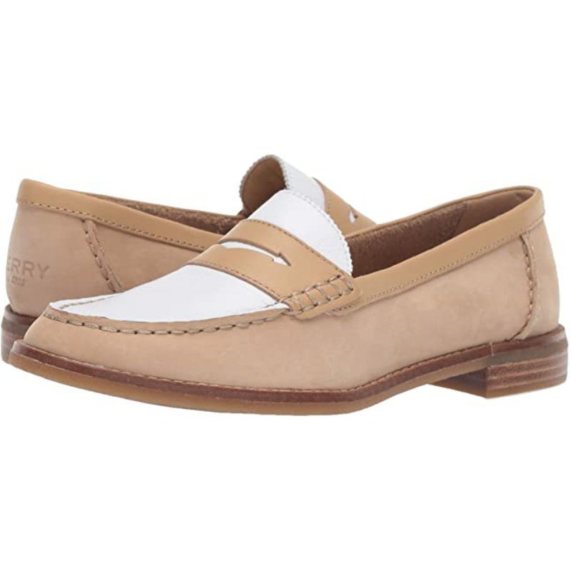 Sperry Women s Seaport Penny Tri Tone Loafer Tan White 5