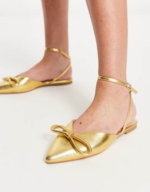 Gold clearance bow flats, Gold weave bow ballet pumps River Island clearance