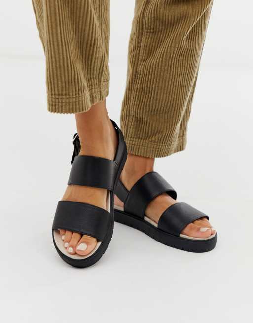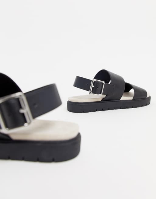 Monki exclusive double strap flat slingback sandals in black